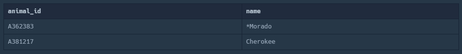 FROM ( SELECT B.ANIMAL_ID, B.ANIMAL_TYPE, B.NAME