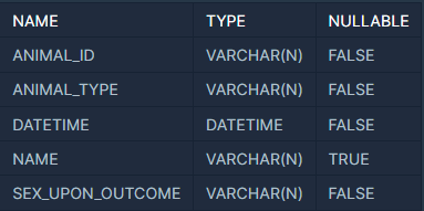 ANIMAL_OUTS 테이블 구조는 다음과 같으며,