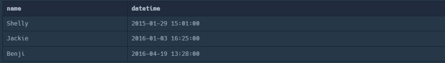 아직 입양을 못 간 동물 중, 가장 오래 보호소에 있었던 동물 3마리의 이름과 보호 시작일을 조회하는 SQL문을 작성해주세요. 이때 결과는 보호 시작일 순으로 조회해야 합니다.SELECT *