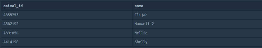 FROM ( SELECT O.ANIMAL_ID, O.NAME